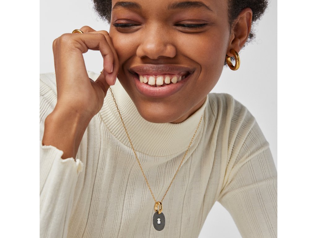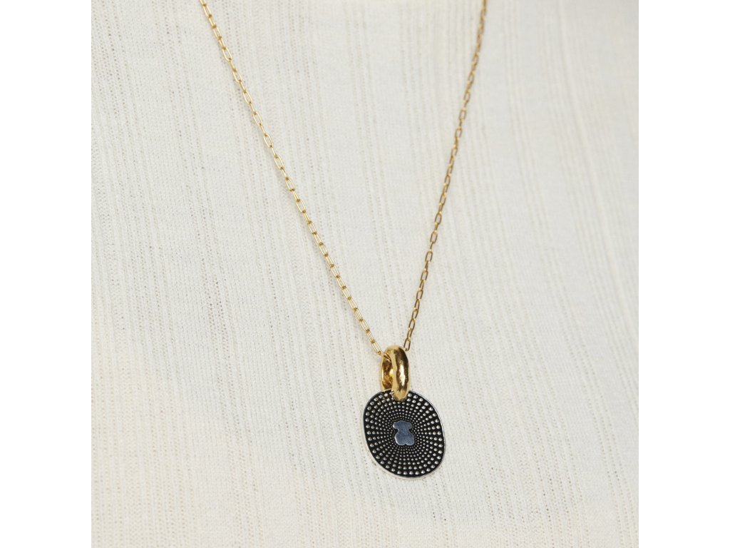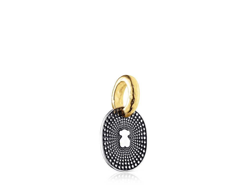 Prívesok Tous Oursin zo žltého striebra Vermeil a tmavého striebra so smaltom. Veľkosť motívu: 2,5 cm. Výrobná technológia: odlievanie. Striebro Vermeil - vysokokvalitné striebro najvyššej rýdzosti 925 pokryté vrstvou 18-karátového zlata. Tmavé striebro - striebro rýdzosti 925 pokryté vrstvou ruthénia, minerálu, ktorý zaručuje trvanlivosť a lesk.