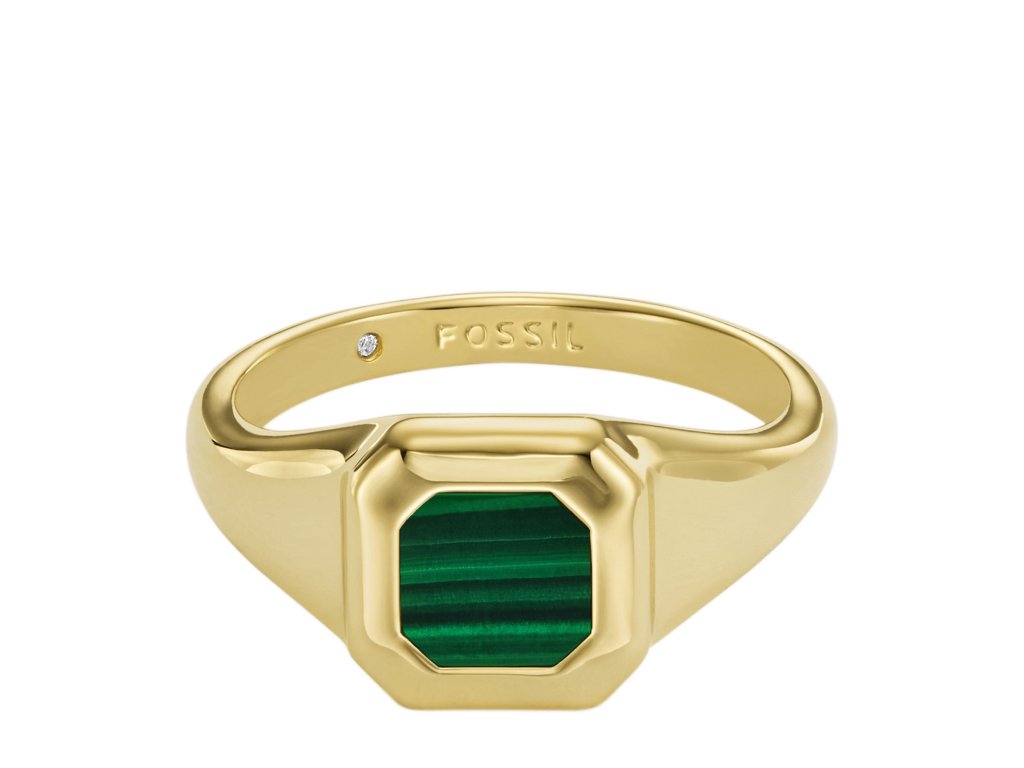 Moderný dizajn a efektný zelený kameň kombinuje prsteň Fossil All Stacked Up. Vyniká zeleným malachitom, ktorý mu dodáva sofistikovaný a jedinečný vzhľad.
