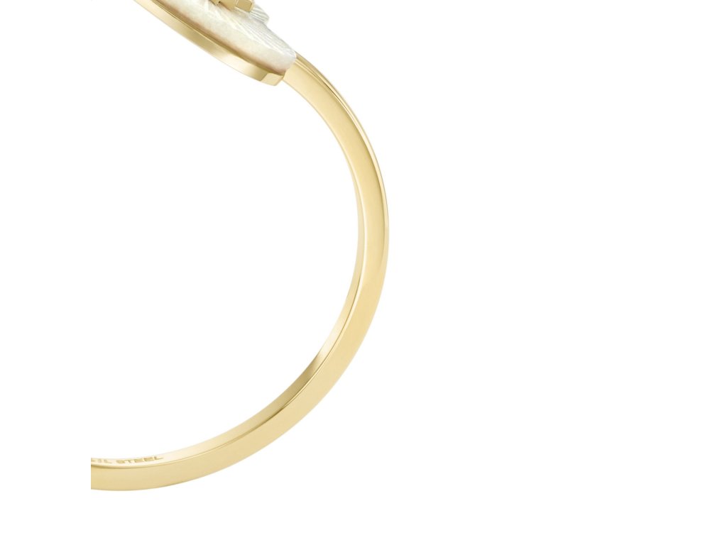 Svojím netradičným prevedením a jemným dizajnom plným detailov zaujme prsteň od Fossil. Kombinuje tvar srdca s perleťou, pozláteným detailom v tvare hviezdy a krištáľom.