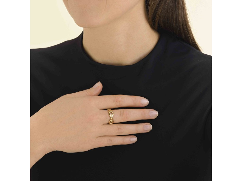 Moderný a zároveň nadčasový, taký je dizajn tohto prsteňa v štýle retiazky. Prsteň je vyrobený z kvalitnej nehrdzavejúcej ocele a pozlátený žltým zlatom.