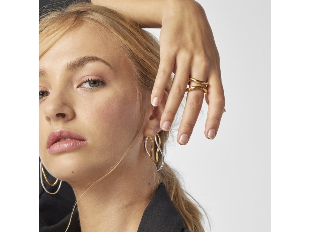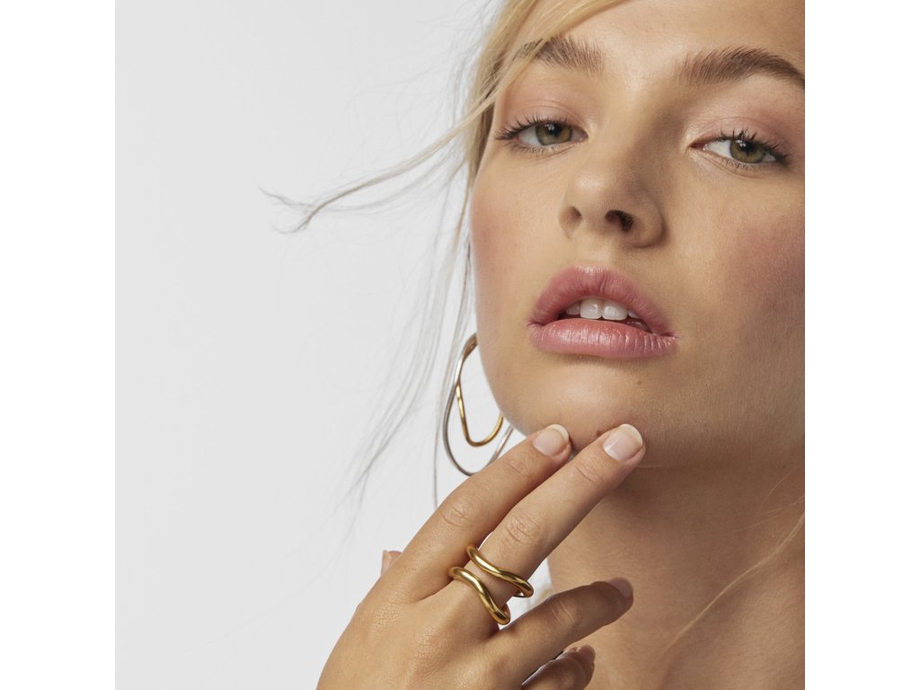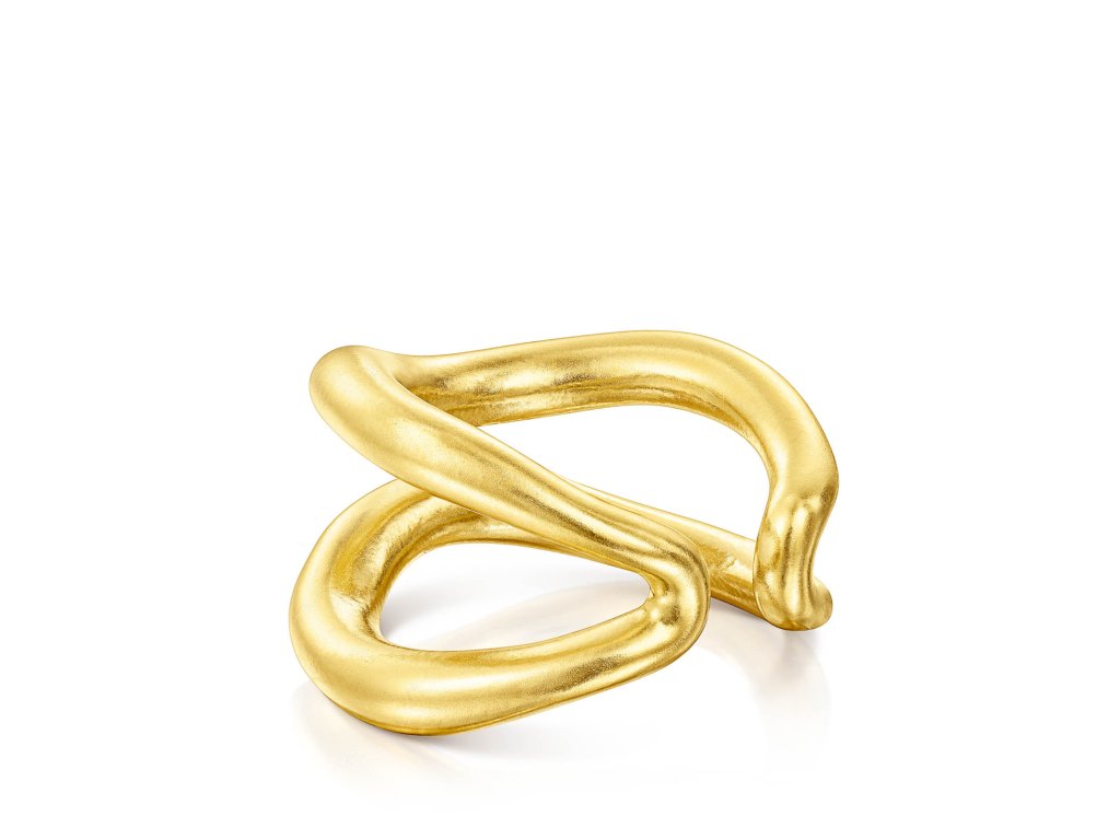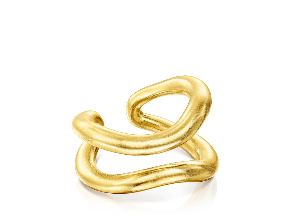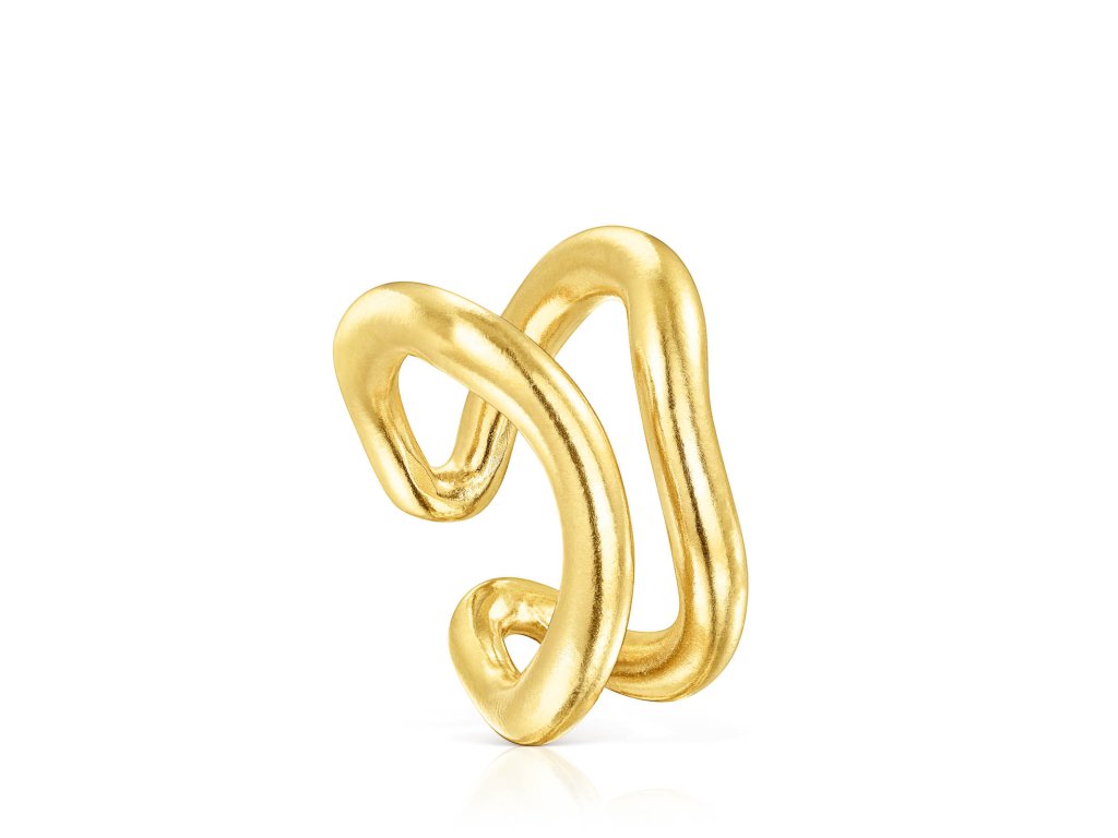 Dvojitý otvorený prsteň TOUS Hav zo žltého vermeilového striebra. Šírka: 16 mm. Hrúbka: 4 mm. Striebro s rýdzosťou 925, ktoré je pokryté vrstvou 18-karátového zlata s hrúbkou 3 - 5 mikrónov bez ďalšej vrstvy kovu. Výrobná technológia: odlievanie.