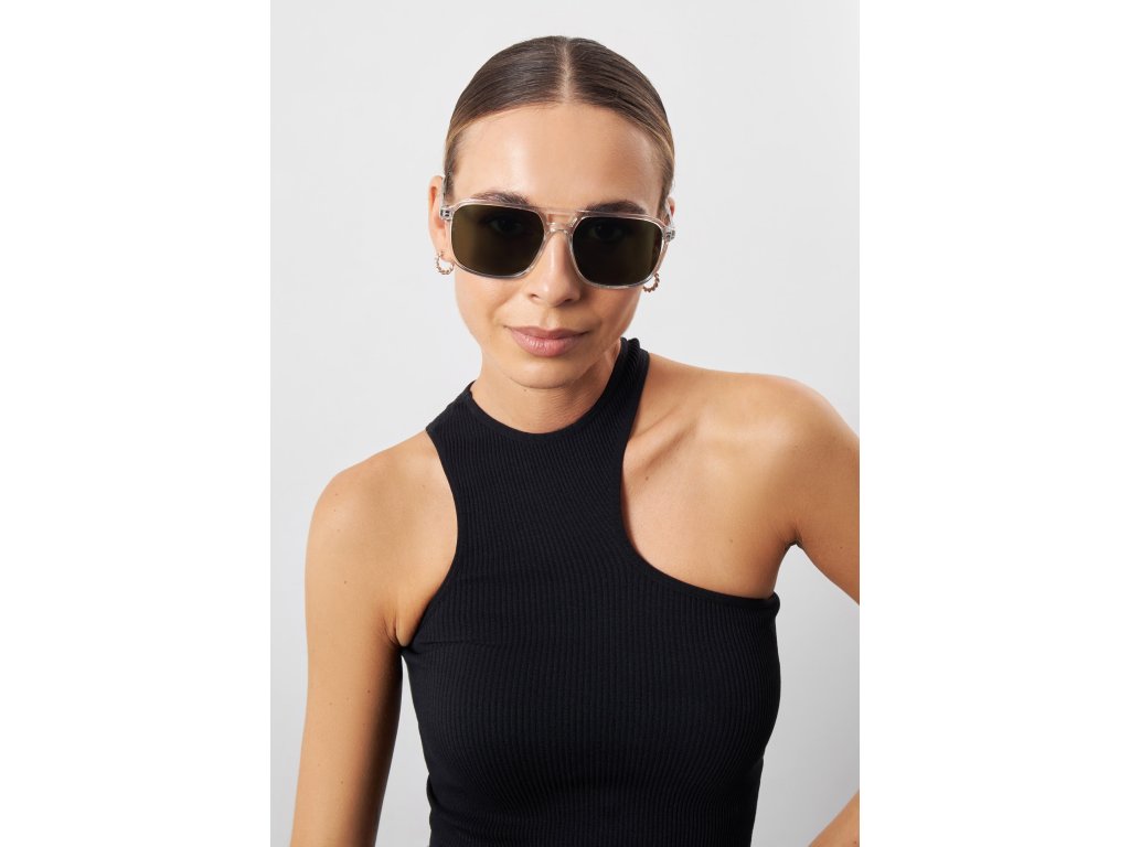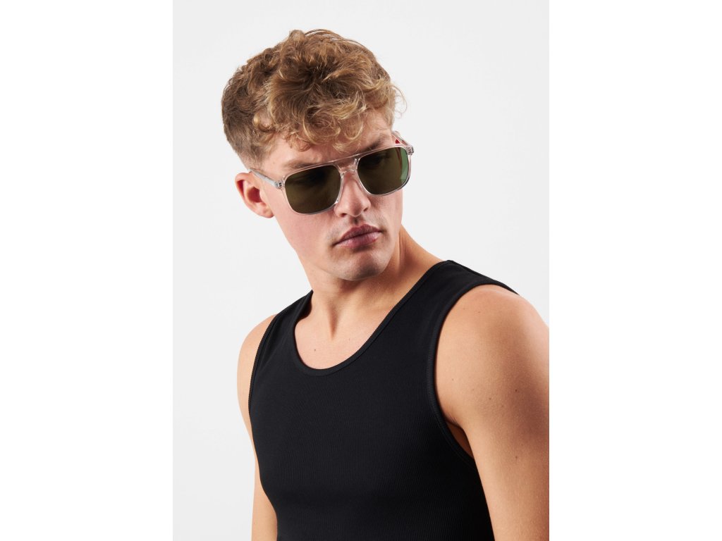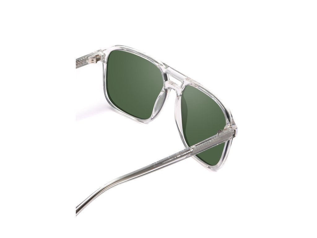 Unisex ECO Shades Lai Green slnečné okuliare sú inšpirované čistotou prírody a vyrobené s odkazom na udržateľnosť. Tieto okuliare so štvorcovými rámami v čírej farbe pripomínajúcej priezračnú vodu z vodopádu a šošovkami v zelenej farbe dažďového pralesa prinášajú moderný a zároveň svieži dizajn.