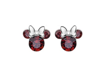 Rozkošné detské náušnice v tvare hlavy Minnie Mouse zo striebra, osadené červenými kryštálmi,...