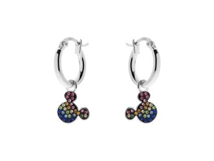 Hravé detské náušnice s príveskom Mickey Mouse zo striebra, osadené farebnými kryštálmi, potešia...