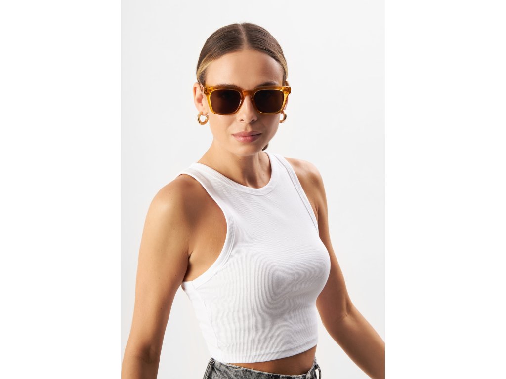 Sluneční brýle ECO Shades Martelli Yellow kombinují stylové hranaté obroučky žluté barvy a s teplými, hnědými skly. Jsou výsledkem propojení moderního designu a principů udržitelnosti. Díky lehké konstrukci a jemně tónovaným sklům se stanou nejen módním doplňkem, ale i nepostradatelným společníkem na každý den.