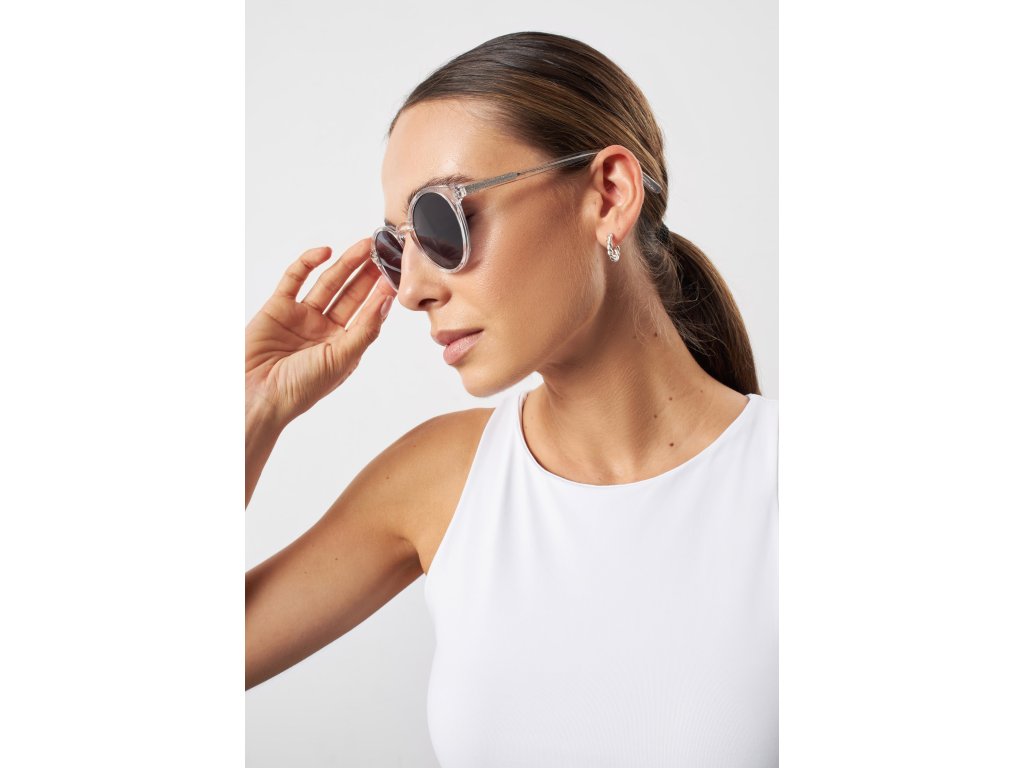 Unisex ECO Shades Zanon Clear sluneční brýle jsou dokonalým spojením moderního designu a ekologických materiálů. Transparentní kulaté obroučky čiré barvy dodávají těmto brýlím jedinečný minimalistický vzhled, zatímco šedá skla vytvářejí stylový kontrast. Zanon symbolizuje odvahu být sám sebou a vyjádřit svůj styl.Tyto brýle jsou tedy ideální volbou pro ty, kteří chtějí vyniknout s nenápadnou elegancí.